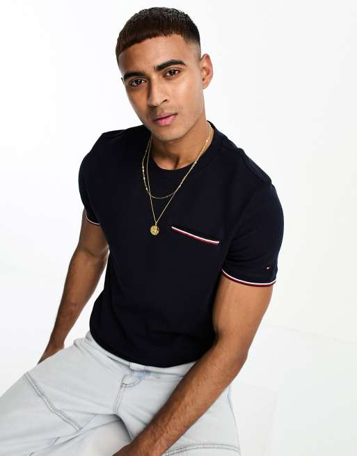 Camiseta azul con bolsillo estilo panal de Tommy Hilfiger