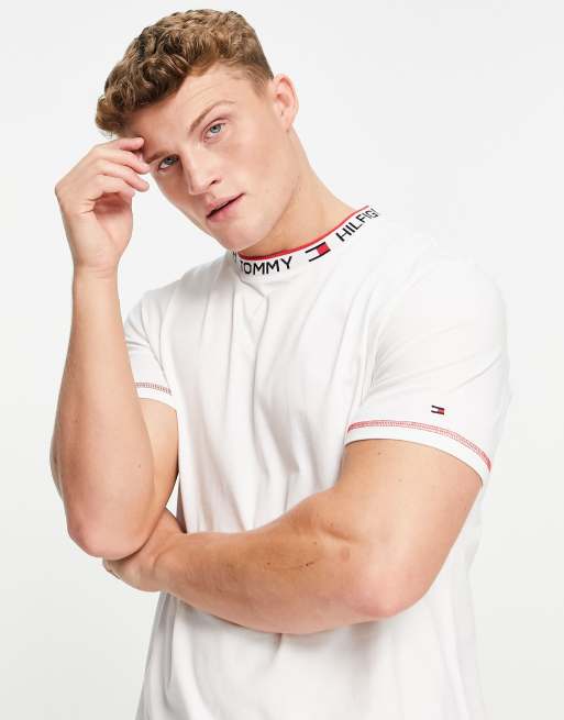 Camiseta blanca de estar por casa con cinta del logo en el cuello de Tommy Hilfiger
