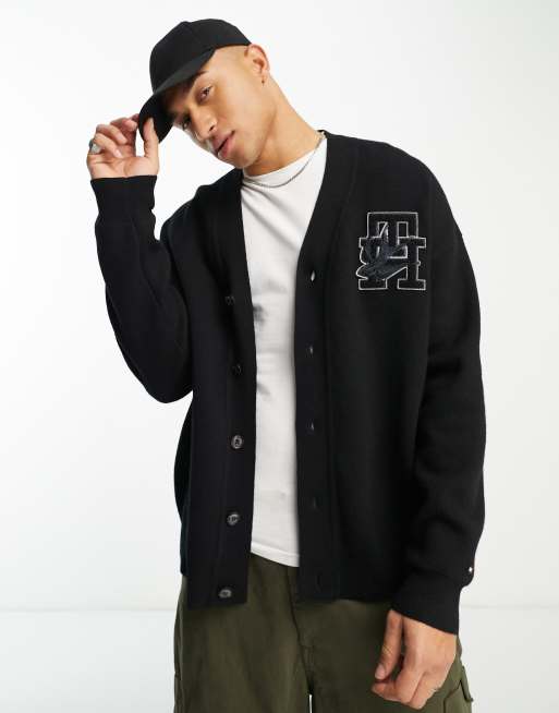 Cárdigan negro de manga larga con diseño de monograma de estilo universitario de Tommy Hilfiger x Shawn Mendes