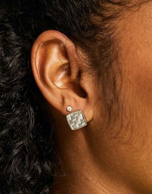 Pendientes de botón plateados con textura efecto entretejido de Tommy Hilfiger