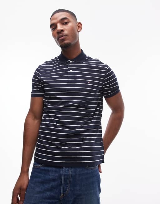 Polo azul marino a rayas de corte estándar de algodón de Tommy Hilfiger