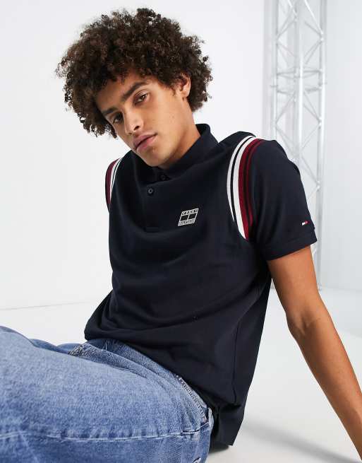 Polo azul marino de corte estándar con logo y detalle de canalé en los hombros de mezcla de algodón de Tommy Hilfiger