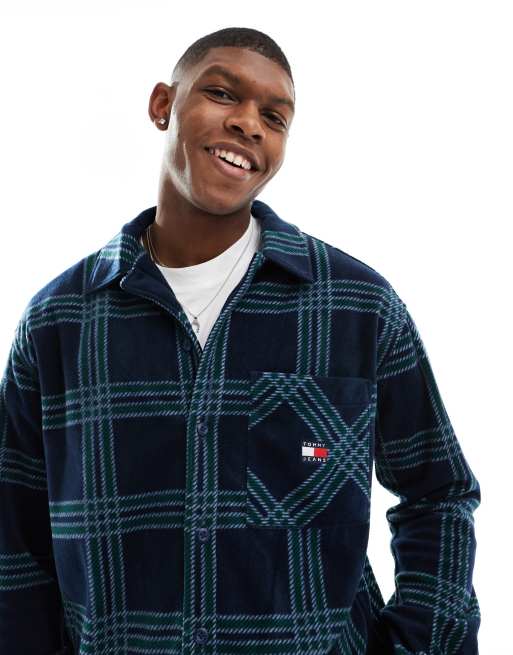 Camisa azul marino a cuadros de corte estándar de franela de Tommy Jeans