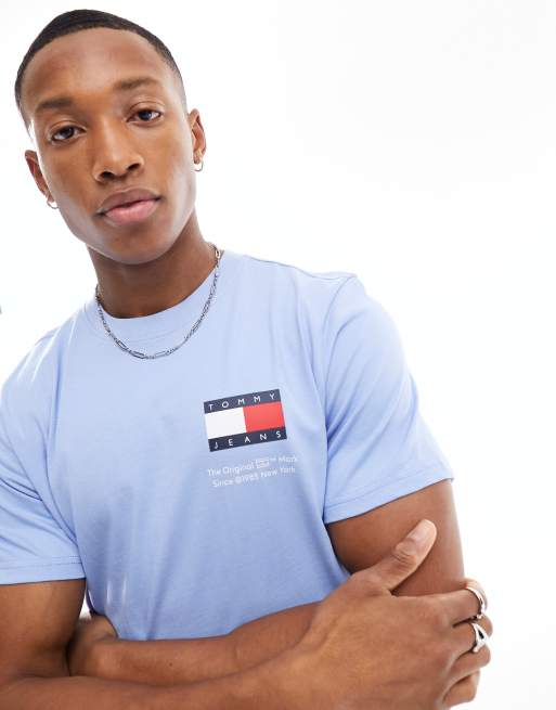 Camiseta azul básica de corte slim con logo de bandera de Tommy Jeans
