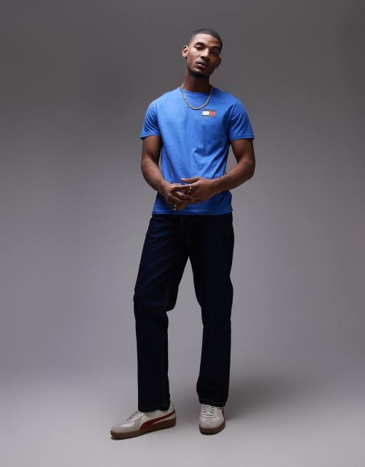 Camiseta azul luminoso básica de corte slim con bandera de Tommy Jeans
