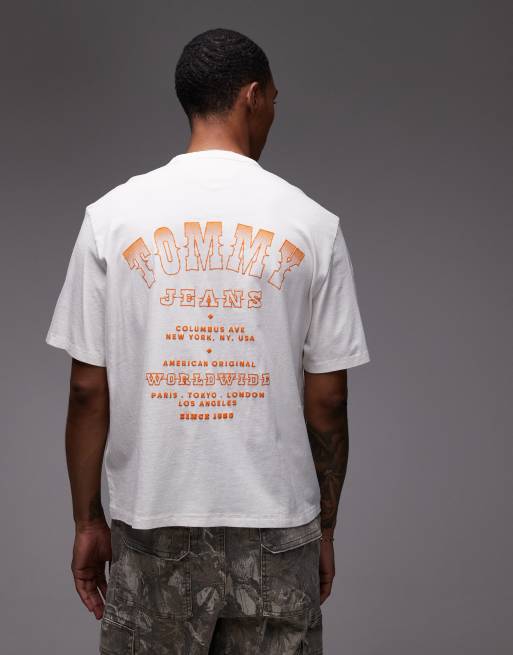 Camiseta blanca y naranja de corte cuadrado con estampado trasero de estilo wéstern de Tommy Jeans