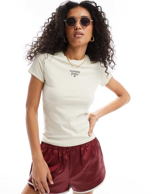 Camiseta blanco hueso básica de corte slim con logo de Tommy Jeans