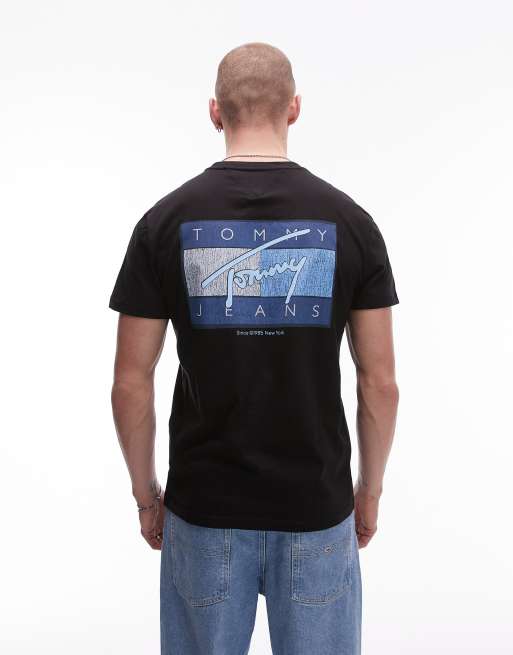 Camiseta negra con estampado gráfico de bandera en la espalda de Tommy Jeans