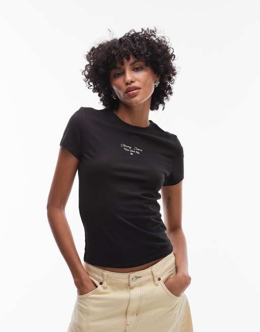 Camiseta negra con logo redondeado en la parte central del pecho de Tommy Jeans