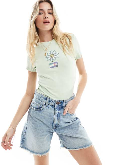 Camiseta verde de corte slim Flower Power de Tommy Jeans
