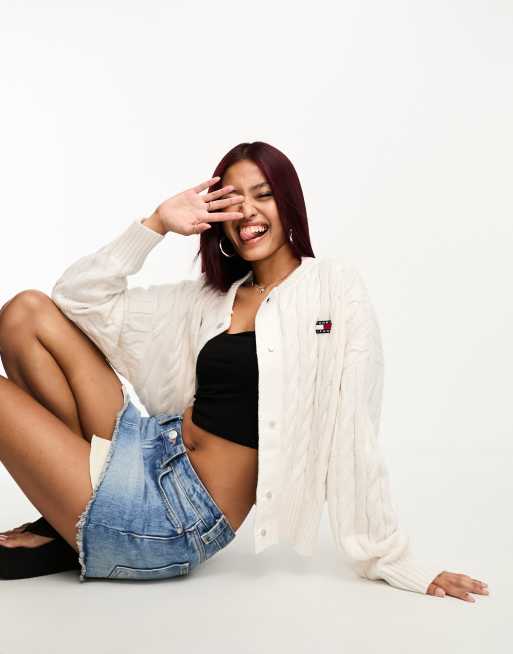 Cárdigan blanco con parche del logo de punto de ochos de Tommy Jeans