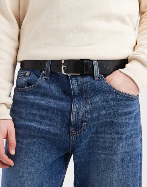 Cinturón negro de cuero con hebilla con logo Austin de Tommy Jeans