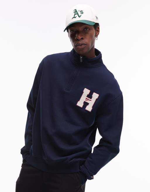 Sudadera azul marino con cremallera corta y parche de estilo universitario de Tommy Jeans