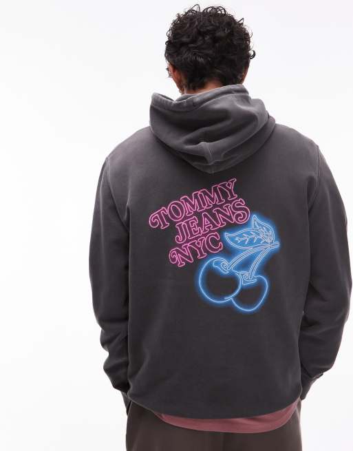 Sudadera negra con capucha y estampado de neón de cerezas de Tommy Jeans