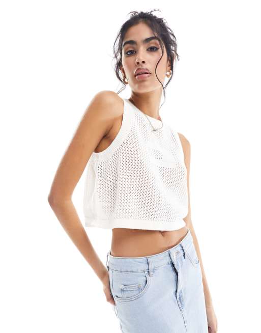 Top blanco sin mangas con bandera de punto calado de Tommy Jeans