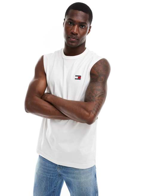 Top blanco sin mangas con parche del logo de Tommy Jeans