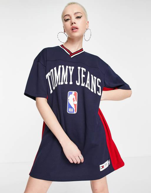 Vestido azul marino de estilo universitario con cuello de pico de malla de poliéster de Tommy Jeans x NBA - NAVY
