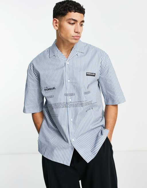 Camisa a rayas azules de manga corta con motivos gráficos de Topman