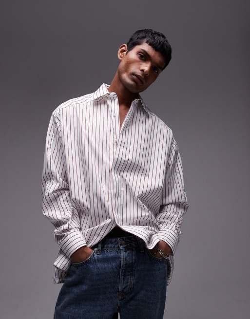Camisa blanca extragrande a rayas rojo tostado de manga larga de Topman