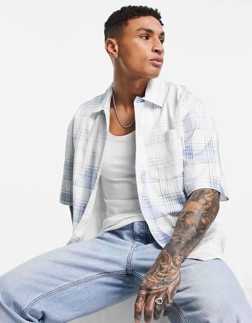 Camisa extragrande con diseño de cuadros blancos y azul descolorido