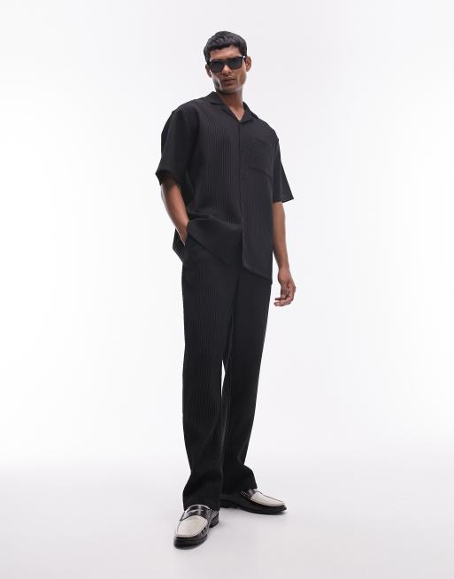 Camisa negra plisada de manga corta de Topman (parte de un conjunto)
