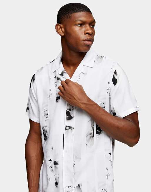 Camisa slim negra y blanca a rayas con estampado floral de Topman