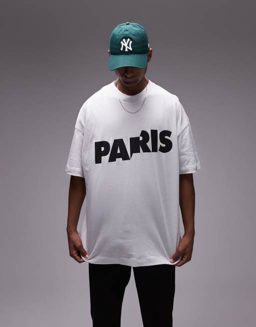 Camiseta blanca ultragrande con estampado de texto "Paris" de Topman