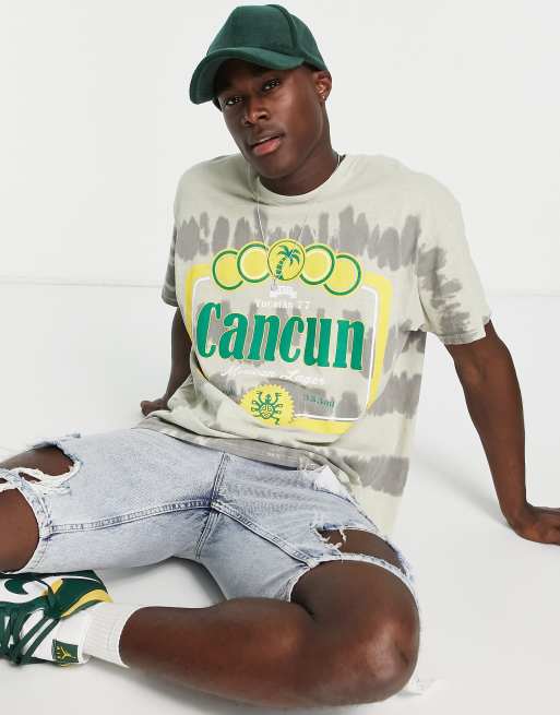 Camiseta extragrande a rayas tie dye y estampado "Cancun" de Topman