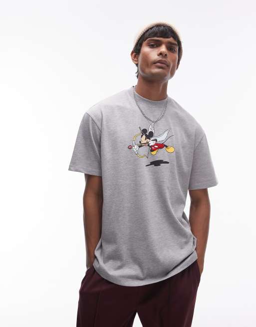 Camiseta gris jaspeado ultragrande con estampado de Mickey cupido de Disney premium de Topman