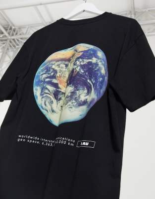 Camiseta negra extragrande con estampado del planeta Tierra en la parte posterior de Topman