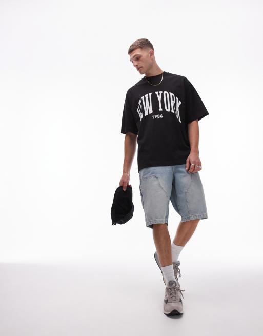 Camiseta negra extragrande con estampado "New York" de Topman
