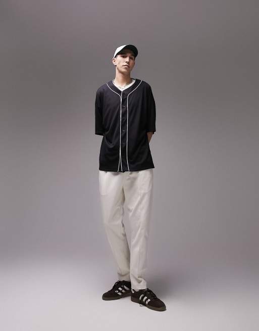 Camiseta negra extragrande de estilo béisbol con ribetes de malla de Topman