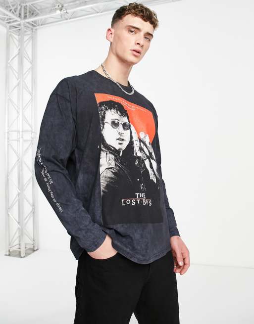 Camiseta negra extragrande de manga larga con estampado "The lost boys" de Topman