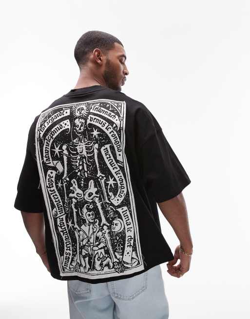 Camiseta negra muy extragrande con parche de esqueleto y zodiaco en el pecho y la espalda de Topman