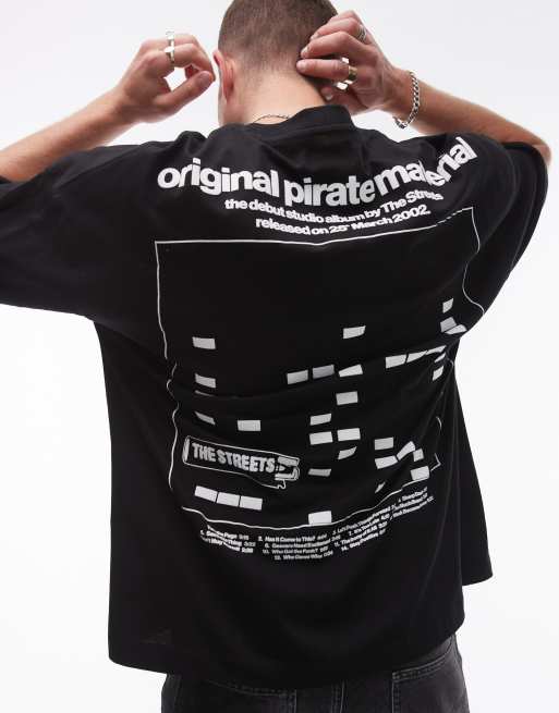 Camiseta negra ultragrande con estampado bordado en el pecho y la espalda premium de Topman x The Streets