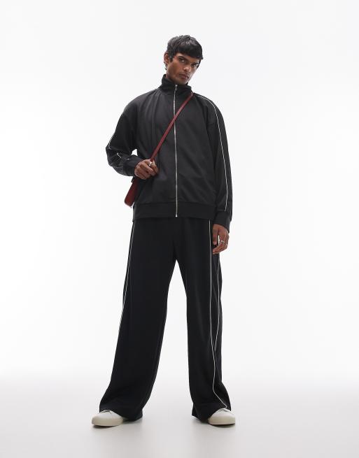 Chándal negro extragrande con detalle de ribetes dobles de Topman