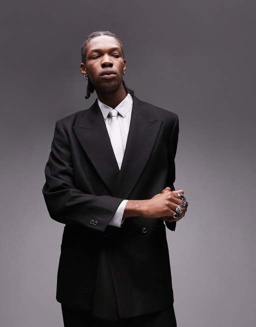 Chaqueta de traje negra de corte cuadrado con doble botonadura de Topman