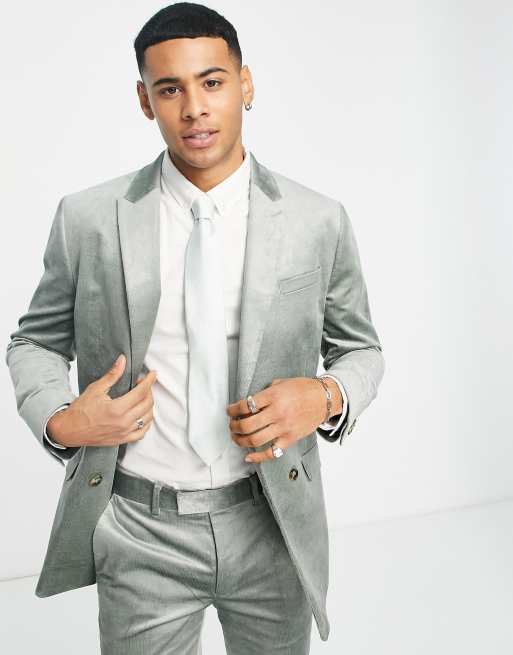 Chaqueta de traje verde claro entallada con doble botonadura de pana de Topman