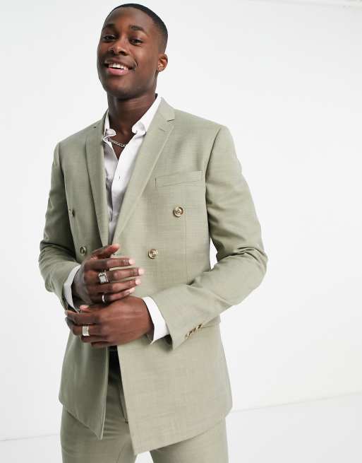 Chaqueta de traje verde claro muy entallada con doble botonadura de Topman