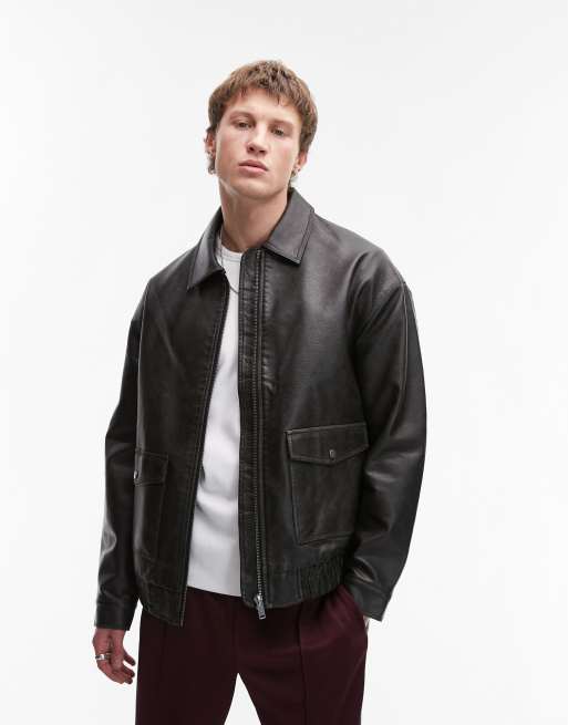 Chaqueta negra de cuero sintético A2 de Topman