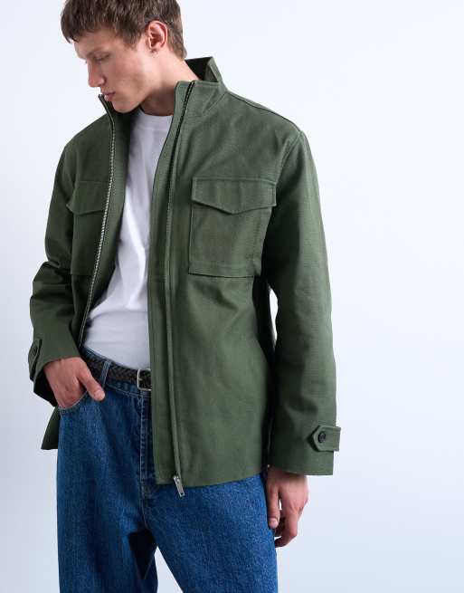 Chaqueta verde con dos bolsillos de lona de Topman