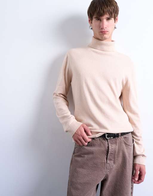 Jersey color piedra básico con cuello vuelto de punto de Topman