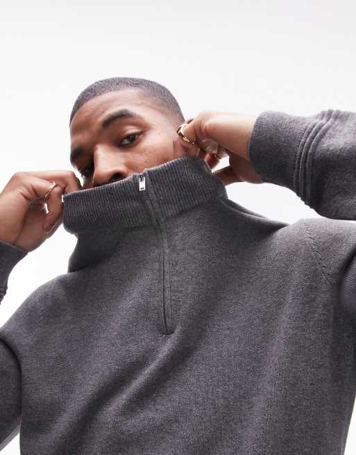 Jersey gris carbón básico con cremallera corta de Topman