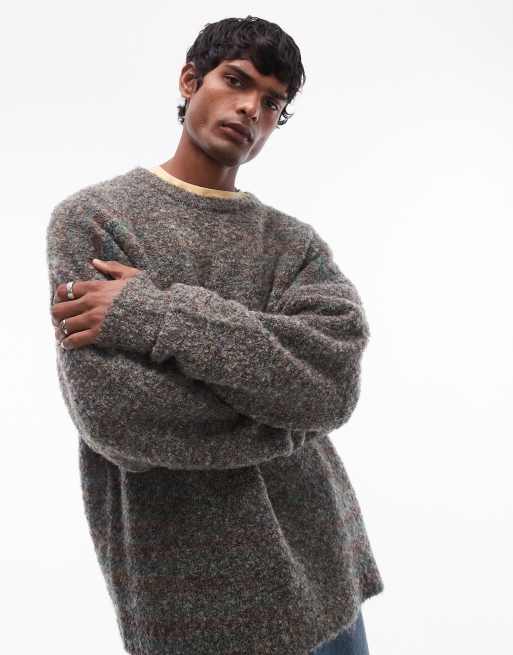 Jersey verde y marrón jaspeado de bouclé de Topman