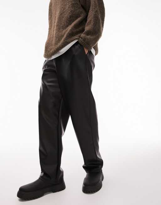 Joggers negros de pernera recta de cuero sintético de Topman