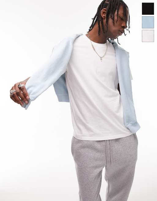 Pack de 3 camisetas clásicas de color blanco, negro y azul claro de Topman