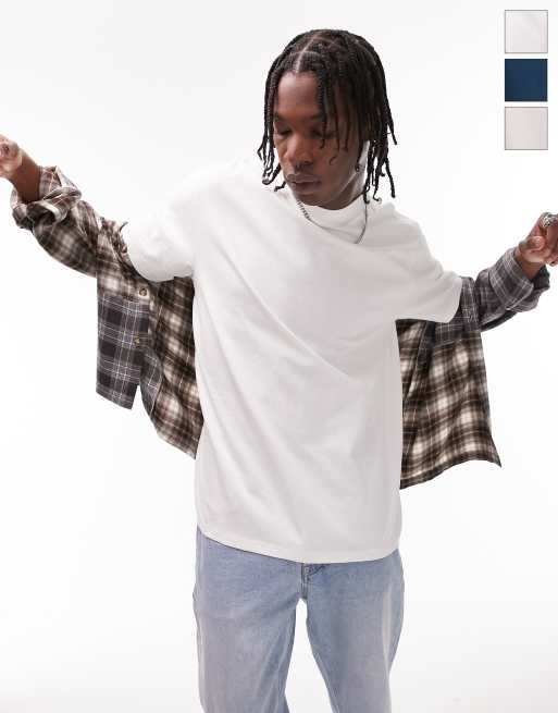 Pack de 3 camisetas de color blanco, azul marino y gris claro holgadas de Topman