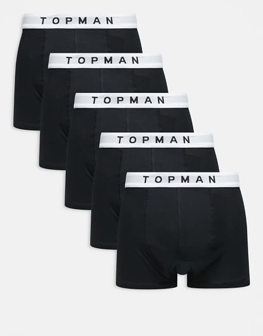 Pack de 5 calzoncillos negros con cinturillas blancas de Topman