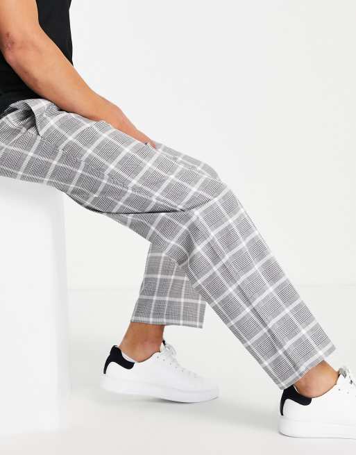 Pantalones a cuadros grises y blancos de pernera ancha de Topman