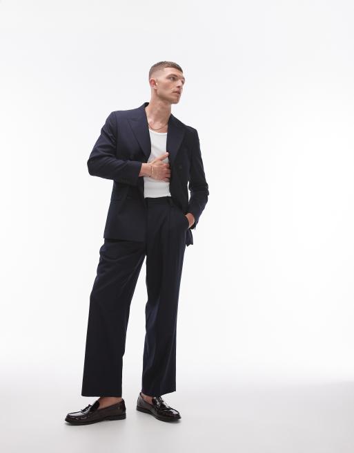 Pantalones azul marino de pernera ancha de mezcla de lino de Topman